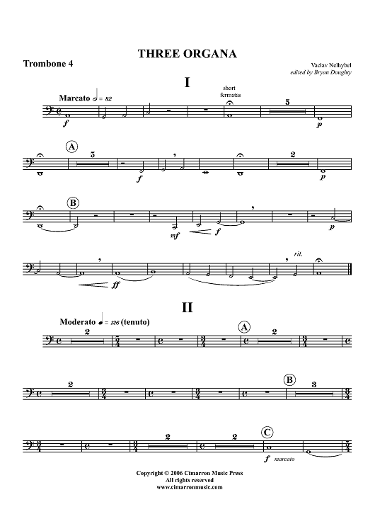 "Three Organa - Trombone 4" Sheet Music by Vaclav Nelhybel