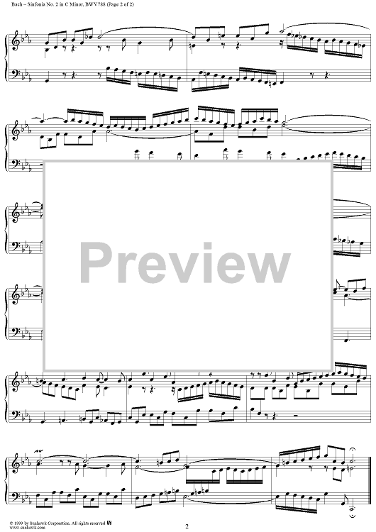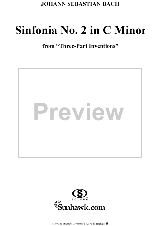 Digital Sheet Music for Three-Part Invention, No. 2, Sinfonia in C Minor by Johann Sebastian Bach scored for Piano Solo; id:236668