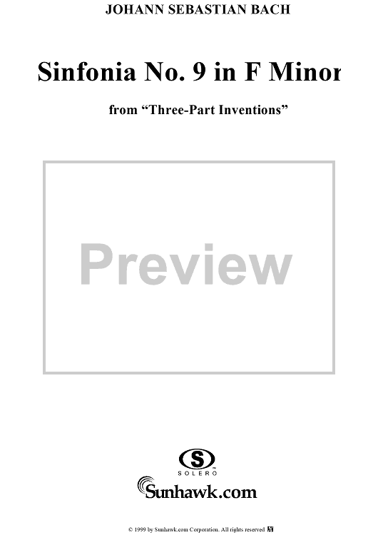Digital Sheet Music for Three-Part Invention, No. 9, Sinfonia in F Minor by Johann Sebastian Bach scored for Piano Solo; id:236670