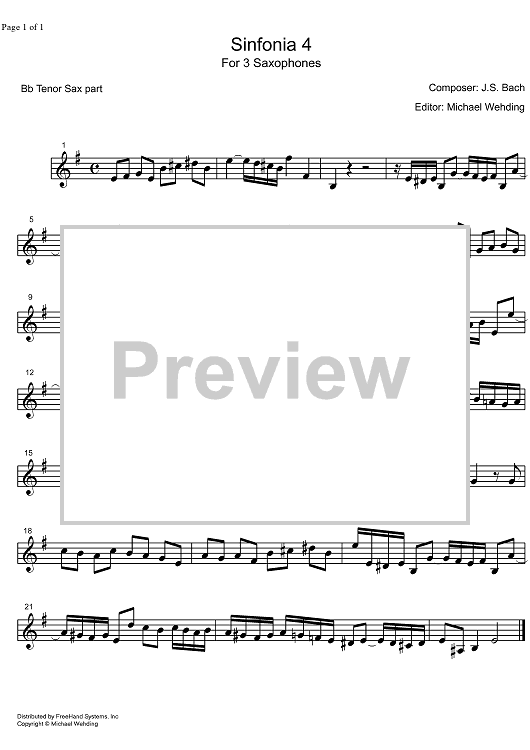 Digital Sheet Music for Three Part Sinfonia No. 4 BWV 790 d minor - B-flat Tenor Saxophone by , Johann Sebastian Bach, Michael Wehding scored for Saxophone Trio; id:324336