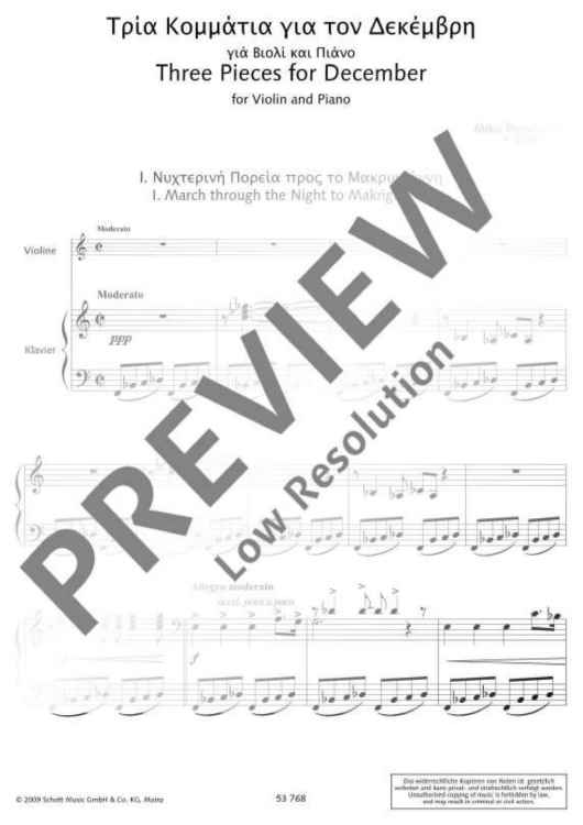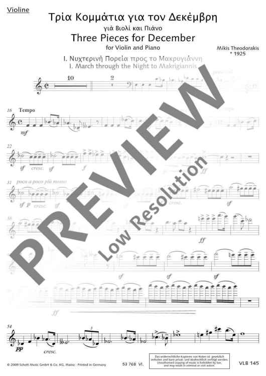 "Three Pieces for December" Sheet Music by Mikis Theodorakis