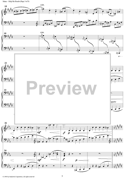 "Three Pieces for Piano Duet, No. 3: Help Me Rondo" Sheet Music by Richard Mann