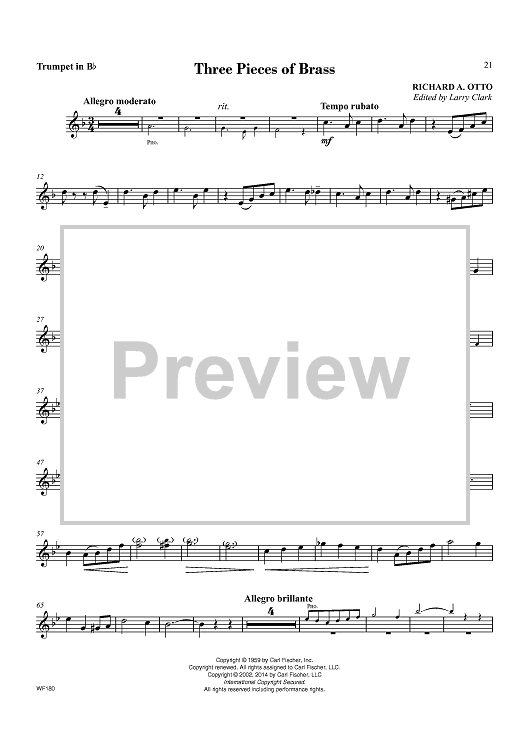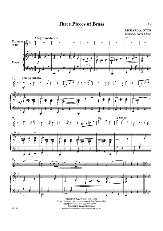 Digital Sheet Music for Three Pieces of Brass by Richard A. Otto scored for Bb Trumpet/Piano; id:451727