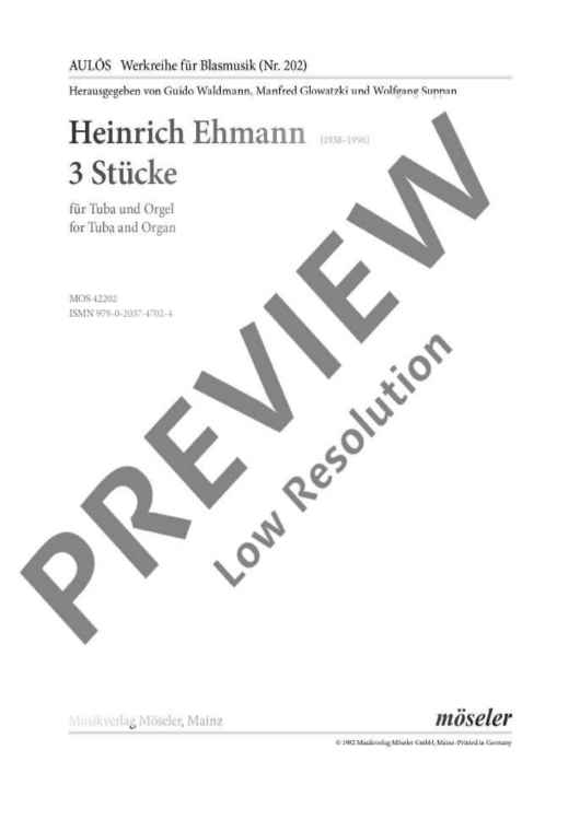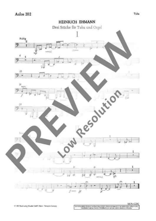 Digital Sheet Music for Three Pieces by Heinrich Ehmann scored for Tuba And Organ; id:493692