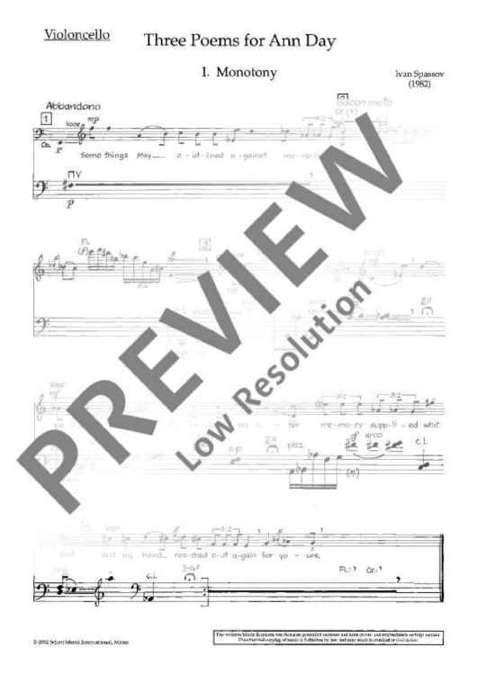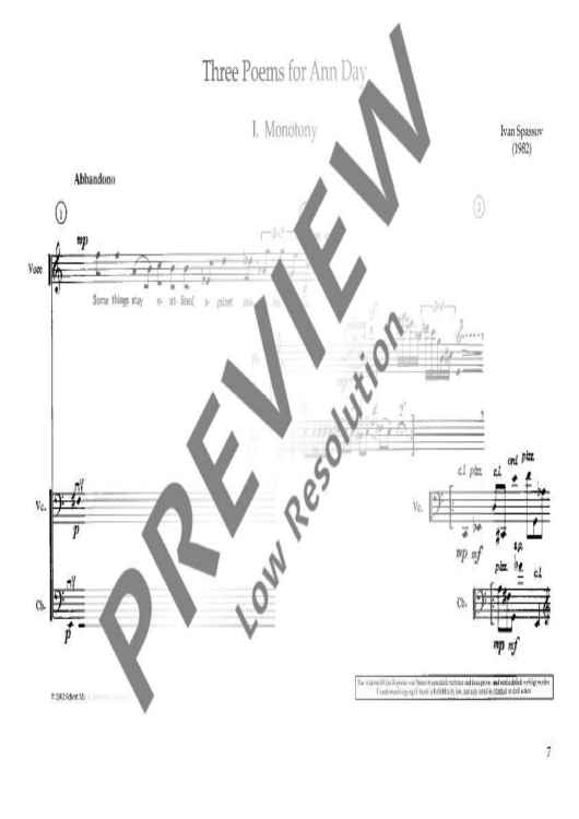 Digital Sheet Music for Three Poems for Ann Day - Score and Parts by Ivan Spassov scored for Soprano, Flute, Horn, Cello And Double Bass; id:474024