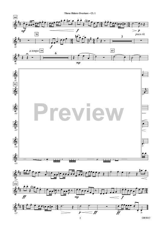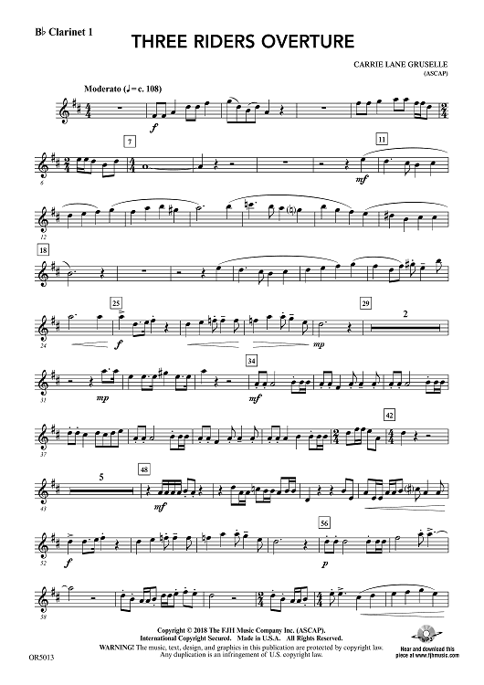 "Three Riders Overture - Bb Clarinet 1" Sheet Music by Carrie Lane Gruselle