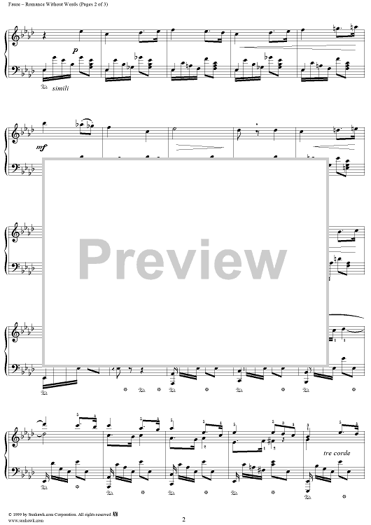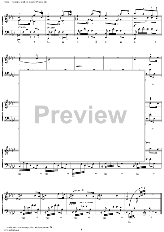 Digital Sheet Music for Three Romances Without Words, op. 17, no. 3 (Romance sans paroles) by Gabriel Fauré scored for Piano Solo; id:271587