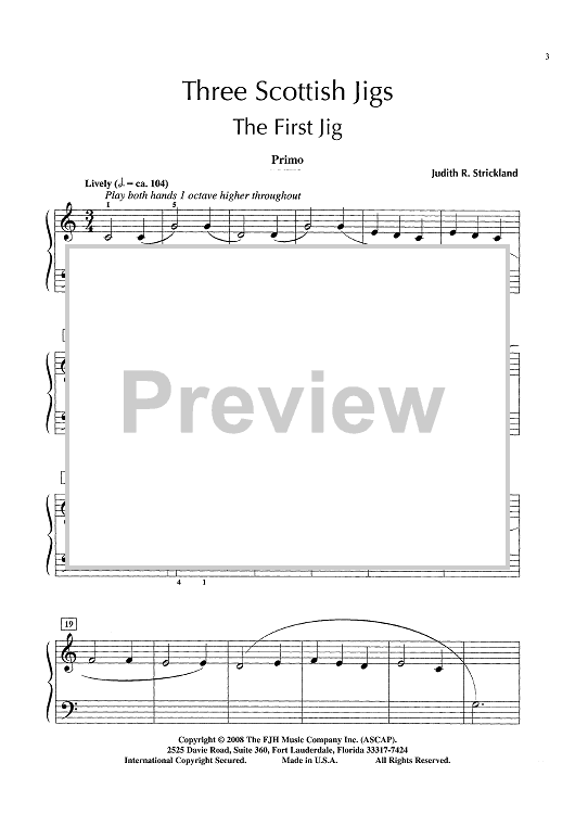 "Three Scottish Jigs" Sheet Music by Judith R. Strickland