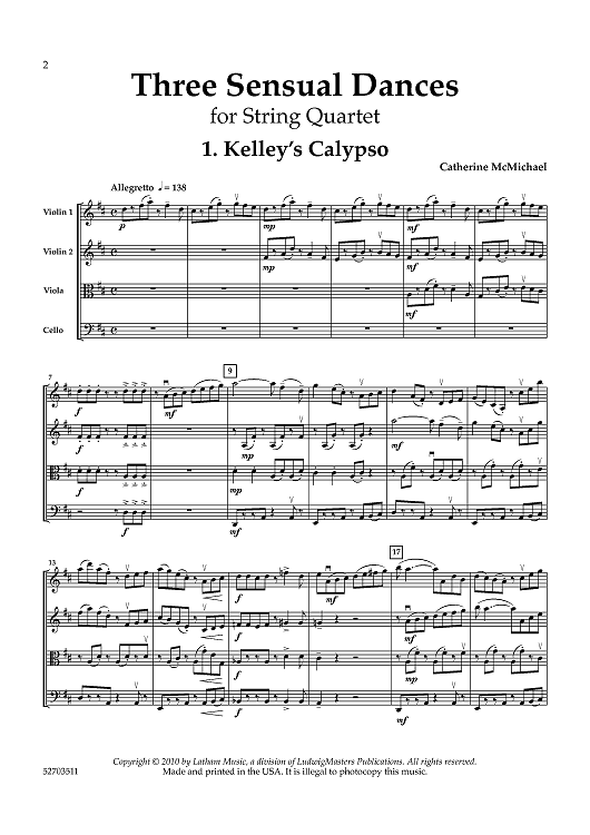 Digital Sheet Music for Three Sensual Dances - Score by Catherine McMichael scored for String Quartet; id:463480