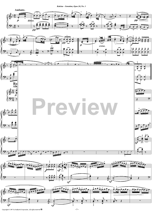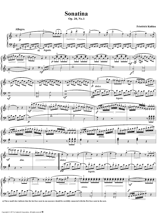 Digital Sheet Music for Three Sonatinas, op. 20, no. 1: Allegro by Friedrich Kuhlau scored for Piano Solo; id:94589