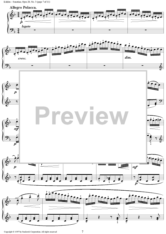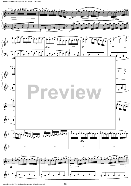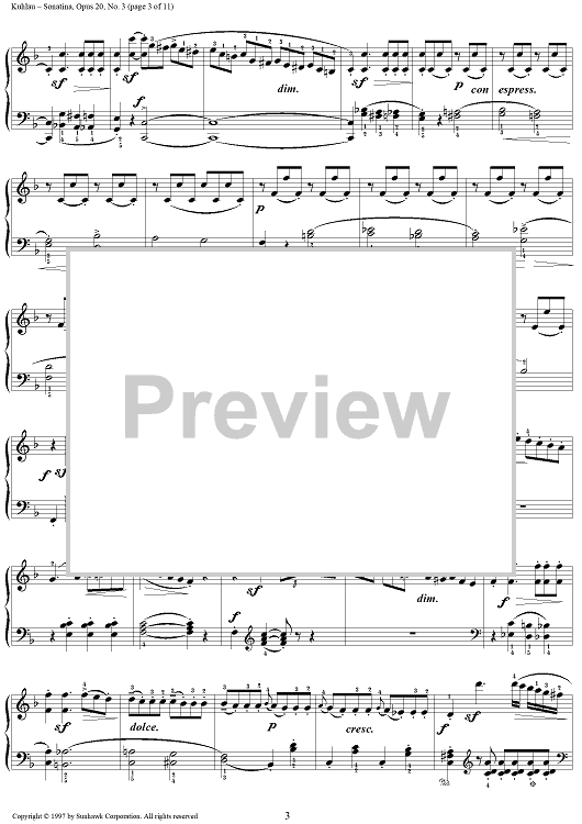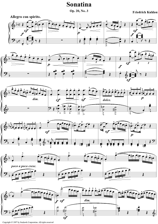 Digital Sheet Music for Three Sonatinas, op. 20, no. 3: F major by Friedrich Kuhlau scored for Piano Solo; id:95065