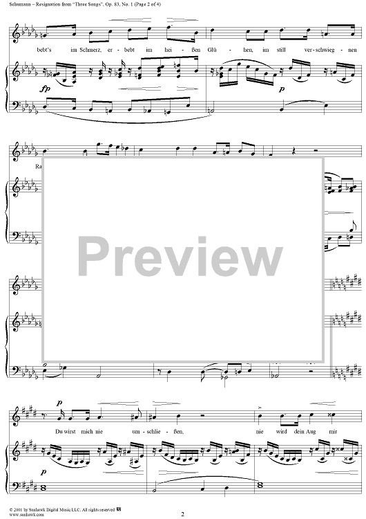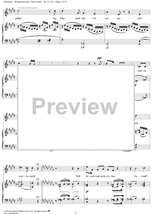Digital Sheet Music for Three Songs, Op. 83, No. 1: Resignation by Robert Schumann, Julius Buddeus scored for Voice/Piano; id:258778