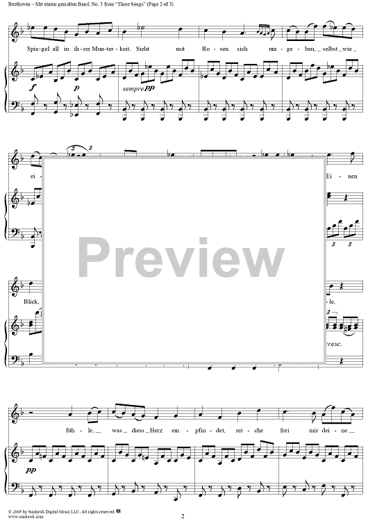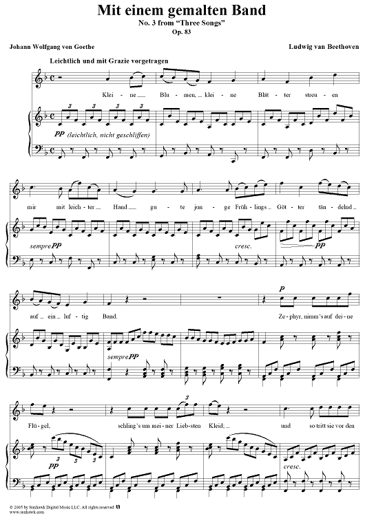 Digital Sheet Music for Three Songs, Op. 83, No. 3: Mit einem gemalten Band by Ludwig van Beethoven, Johann Wolfgang von Goethe scored for Voice/Piano; id:315417