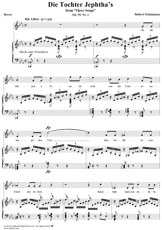 Digital Sheet Music for Three Songs, Op. 95, No. 1: Die Tochter Jephtha's by Robert Schumann, Lord Byron scored for Voice/Piano; id:258497