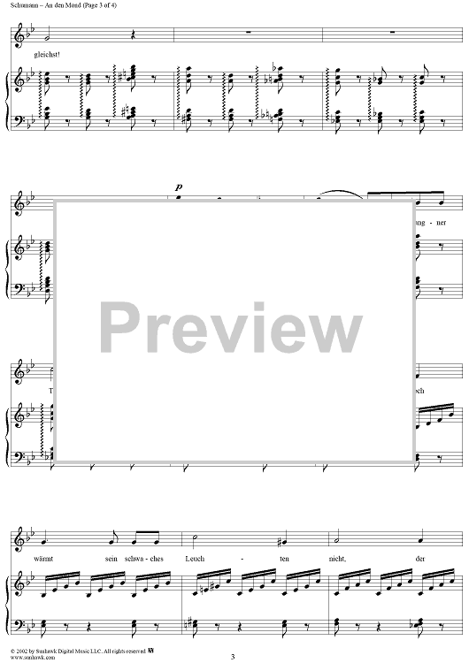 Digital Sheet Music for Three Songs, Op. 95, No. 2: An den Mond by Robert Schumann, Lord Byron scored for Voice/Piano; id:258495