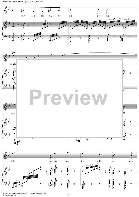 Digital Sheet Music for Three Songs, Op. 95, No. 3: Dem Helden by Robert Schumann, Lord Byron scored for Voice/Piano; id:315343