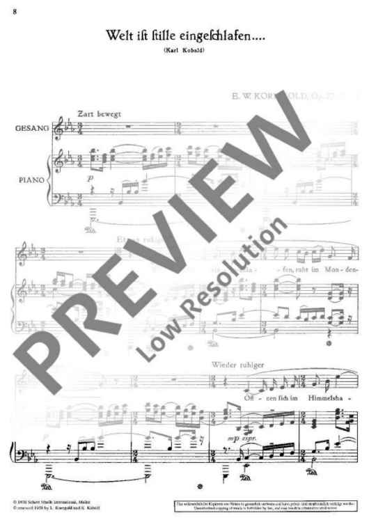 Digital Sheet Music for Three Songs by Erich Wolfgang Korngold scored for High Voice And Piano; id:473945