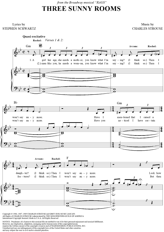 Digital Sheet Music for Three Sunny Rooms by Charles Strouse, Stephen Schwartz scored for Piano/Vocal/Chords; id:259286
