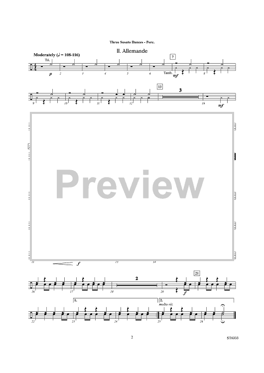 Digital Sheet Music for Three Susato Dances - Percussion by Tielman Susato, William Owens scored for String Orchestra; id:437183