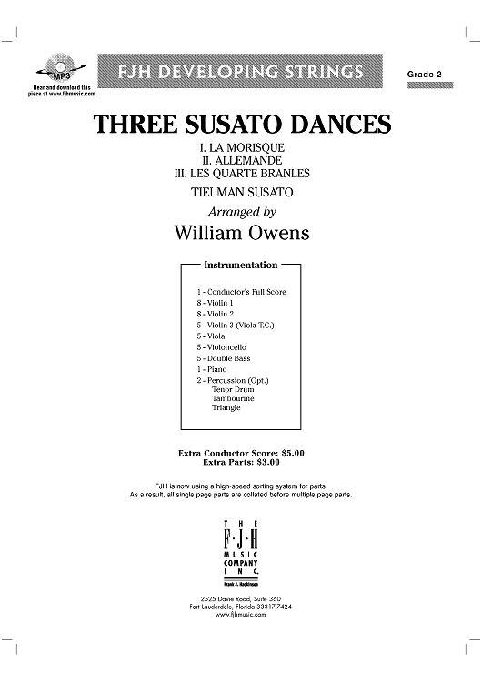 Digital Sheet Music for Three Susato Dances - Score by Tielman Susato, William Owens scored for String Orchestra; id:437175