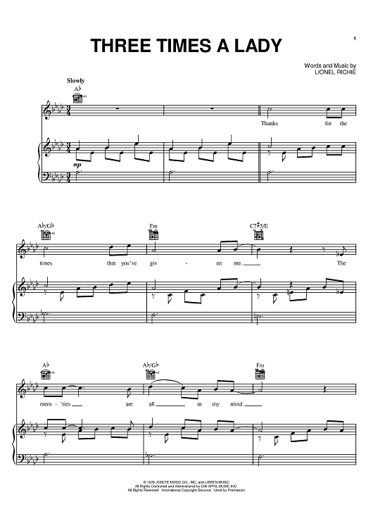 Digital Sheet Music for Three Times A Lady by Lionel Richie, Commodores scored for Piano/Vocal/Chords; id:370540