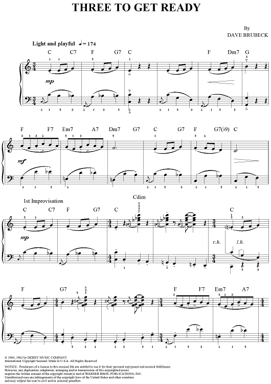 "Three to Get Ready" Sheet Music by Dave Brubeck