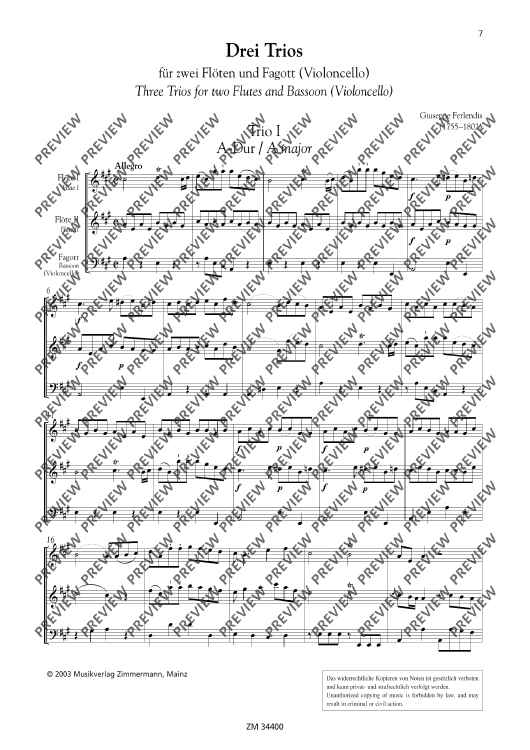 "Three Trios - Score and Parts" Sheet Music by Giuseppe Ferlendis