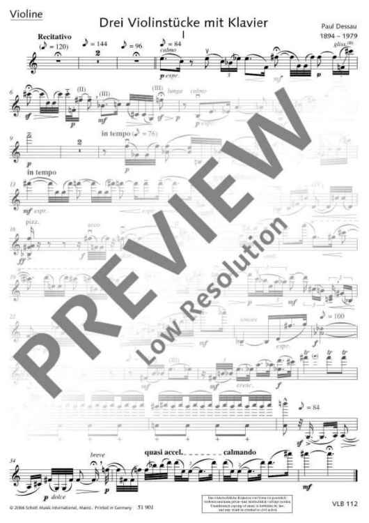 Digital Sheet Music for Three Violin Pieces with Piano by Paul Dessau scored for Violin And Piano; id:477149