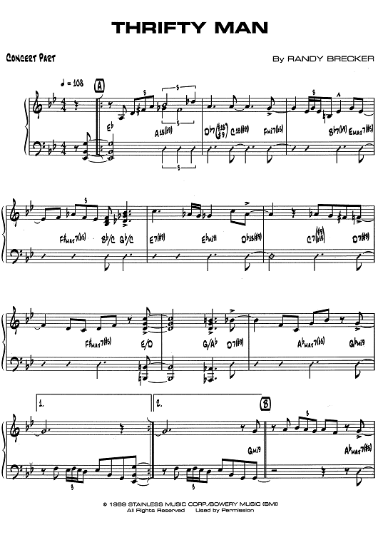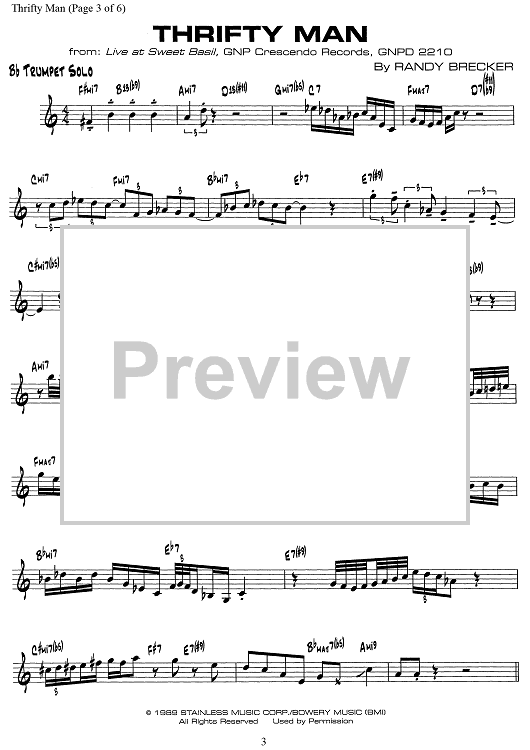 Digital Sheet Music for Thrifty Man by Randy Brecker scored for Bb Trumpet/Piano; id:501995
