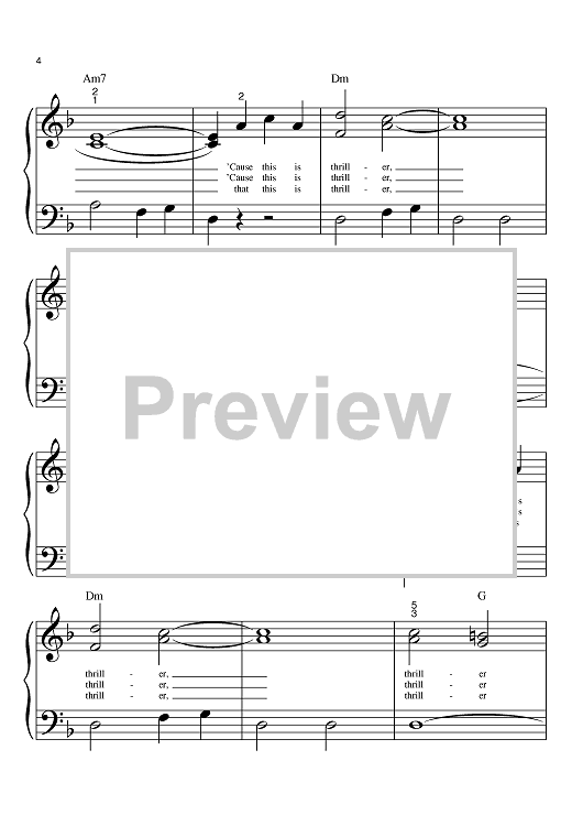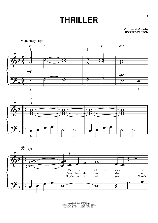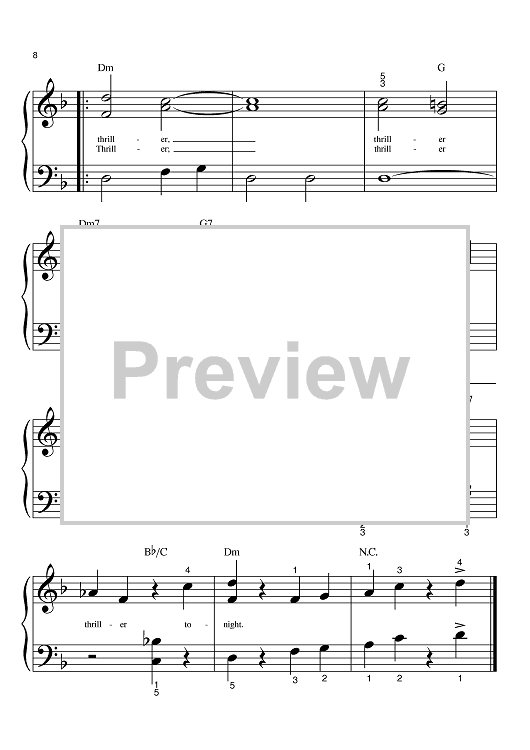 Digital Sheet Music for Thriller by Michael Jackson, Rod Temperton scored for Big Note Piano; id:369335
