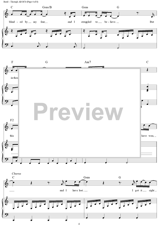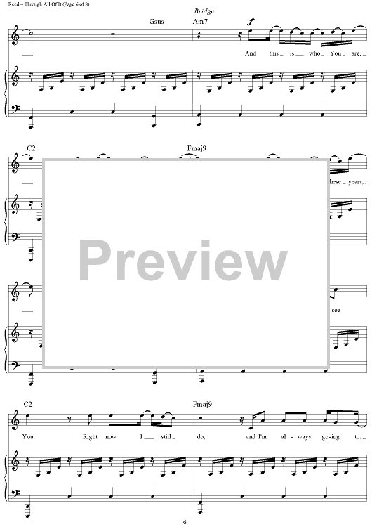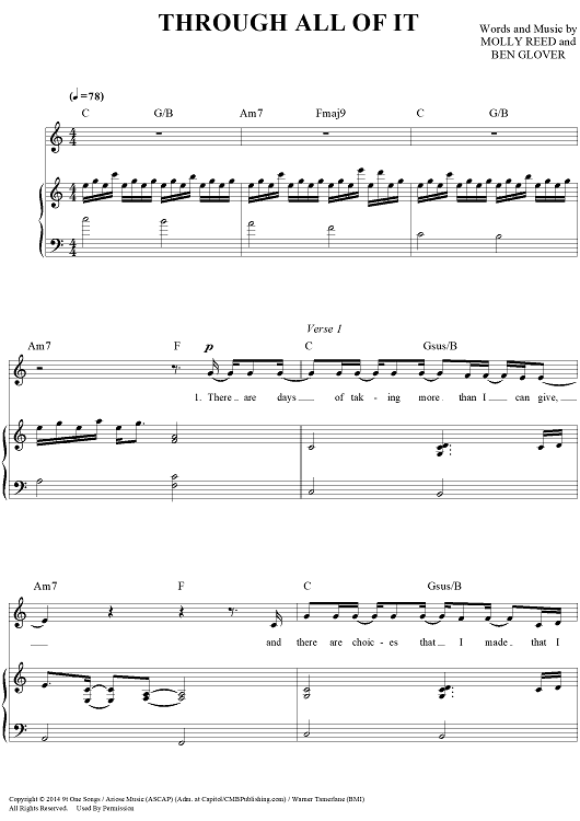 Digital Sheet Music for Through All Of It by Ben Glover, Molly Reed, Colton Dixon scored for Piano/Vocal/Chords; id:449592