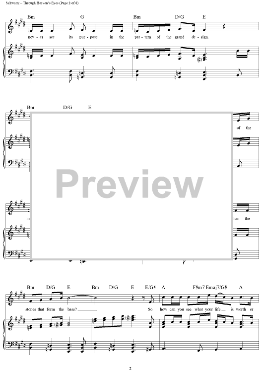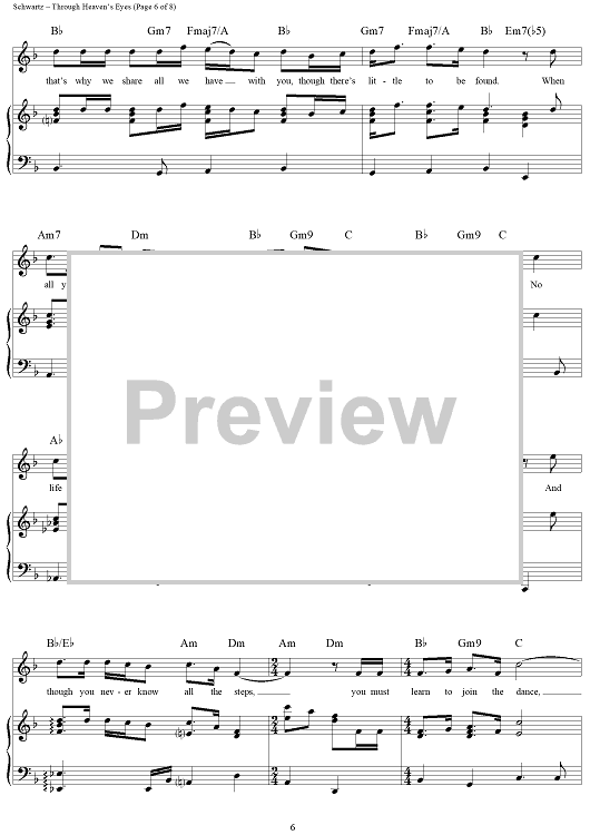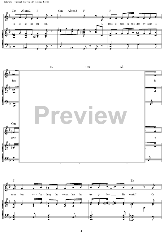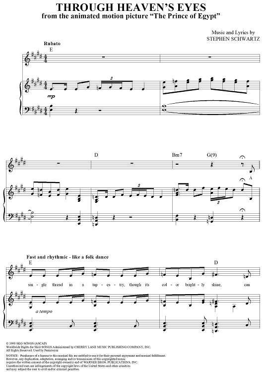 Digital Sheet Music for Through Heaven's Eyes by Stephen Schwartz scored for Piano/Vocal/Chords; id:288226