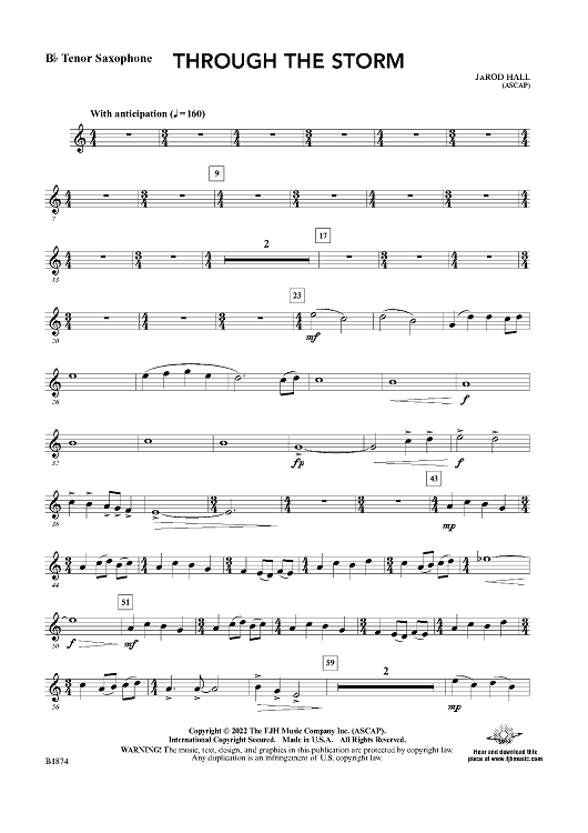 Digital Sheet Music for Through the Storm - Bb Tenor Saxophone by JaRod Hall scored for Concert Band; id:498700