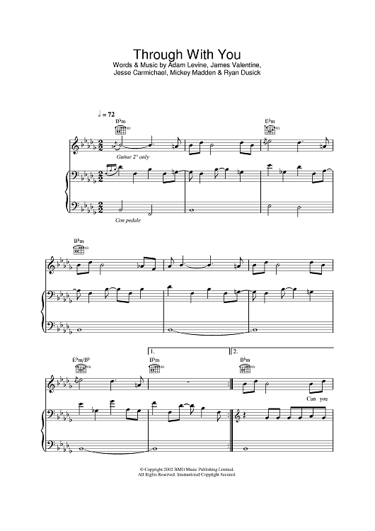 Digital Sheet Music for Through With You by Maroon 5 scored for Piano/Vocal/Chords; id:378505