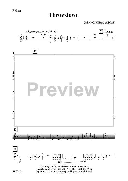 Digital Sheet Music for Throwdown - F Horn by Quincy C. Hilliard scored for Concert Band; id:506075