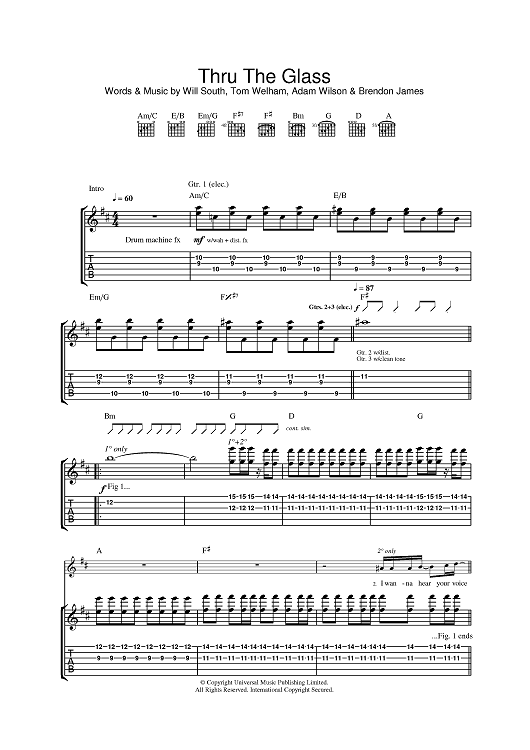 Digital Sheet Music for Thru The Glass by Will South, Thirteen Senses, Tom Welham, Adam Wilson scored for Guitar Tab; id:381317