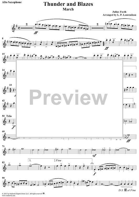 Digital Sheet Music for Thunder and Blazes March (Entry of the Gladiators) - Alto Saxophone by L. P. Laurendeau, Julius Fucik scored for Concert Band; id:282301