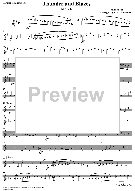 Digital Sheet Music for Thunder and Blazes March (Entry of the Gladiators) - Baritone Saxophone by L. P. Laurendeau, Julius Fucik scored for Concert Band; id:282087