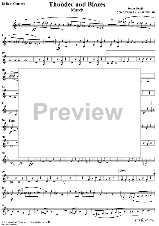 Digital Sheet Music for Thunder and Blazes March (Entry of the Gladiators) - Bass Clarinet by L. P. Laurendeau, Julius Fucik scored for Concert Band; id:282061