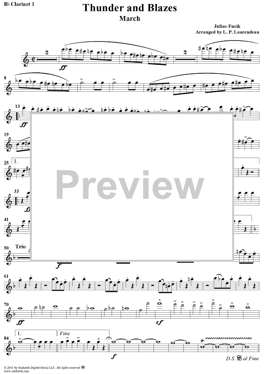 Digital Sheet Music for Thunder and Blazes March (Entry of the Gladiators) - Clarinet 1 by L. P. Laurendeau, Julius Fucik scored for Concert Band; id:282327