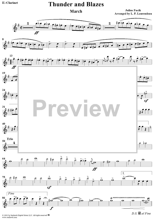 Digital Sheet Music for Thunder and Blazes March (Entry of the Gladiators) - E-flat Clarinet by L. P. Laurendeau, Julius Fucik scored for Concert Band; id:282338