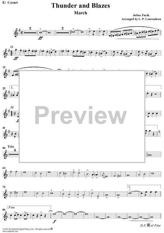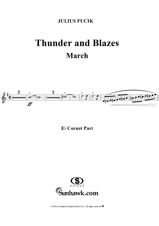 "Thunder and Blazes March (Entry of the Gladiators) - E-flat Cornet" Sheet Music by Julius Fucik