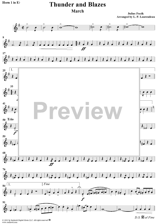 Digital Sheet Music for Thunder and Blazes March (Entry of the Gladiators) - E-flat Horn 1 by L. P. Laurendeau, Julius Fucik scored for Concert Band; id:282080