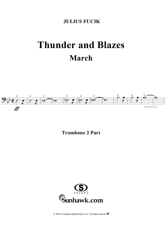 "Thunder and Blazes March (Entry of the Gladiators) - Trombone 2" Sheet Music by Julius Fucik