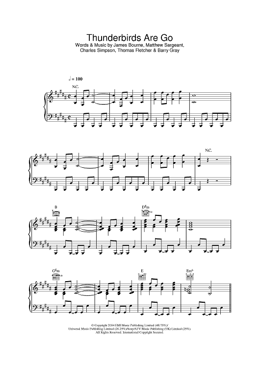 Digital Sheet Music for Thunderbirds Are Go by Busted scored for Piano/Vocal/Chords; id:379373