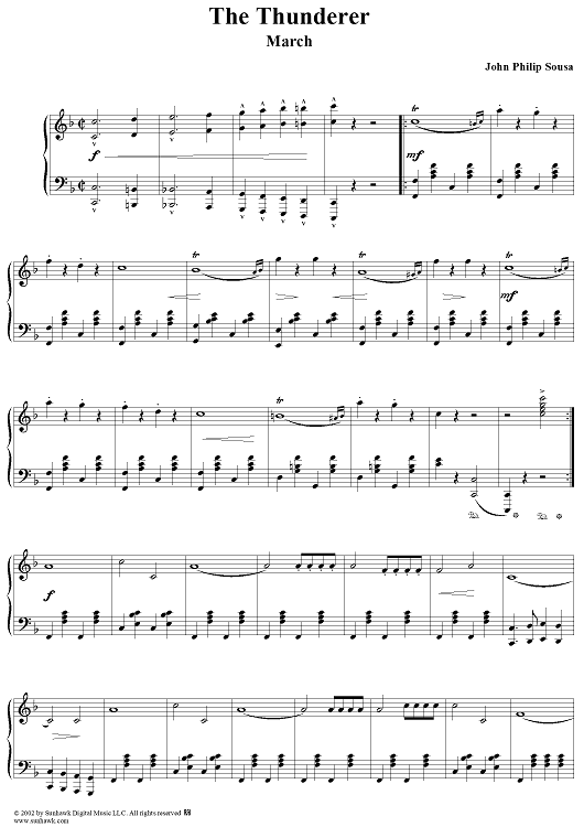 Digital Sheet Music for Thunderer, The, March by John Philip Sousa scored for Piano Solo; id:259400