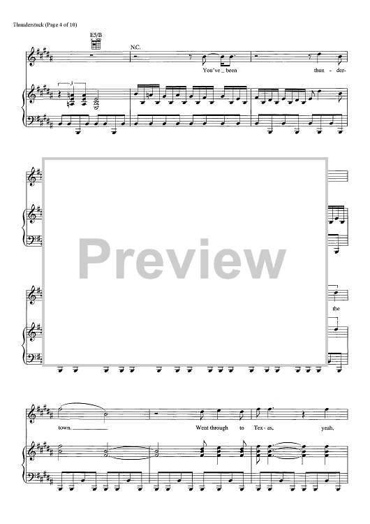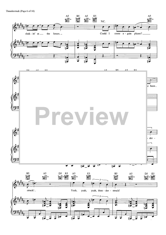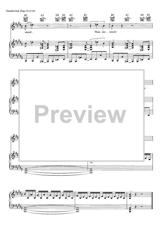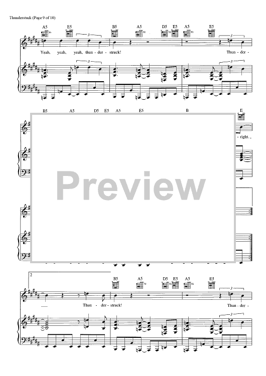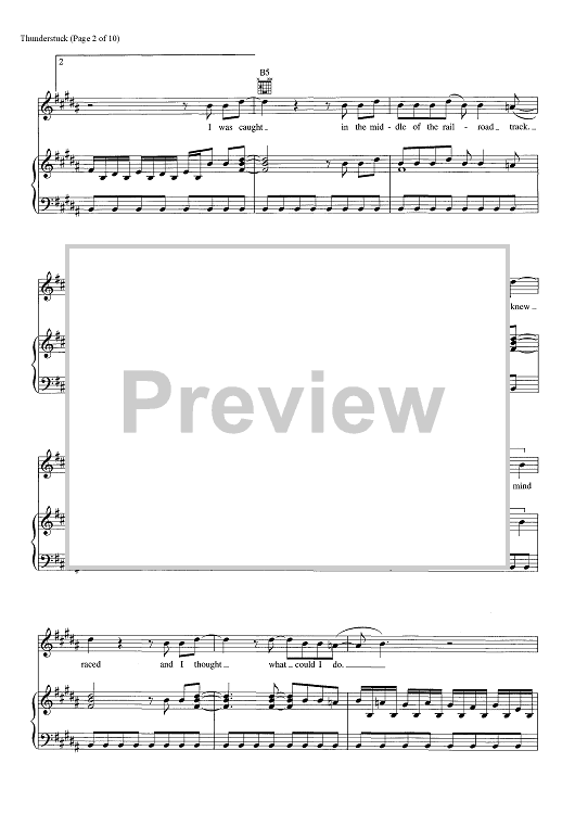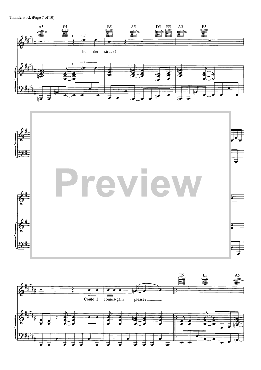Digital Sheet Music for Thunderstruck by AC/DC, Angus Young, Malcolm Young scored for Piano/Vocal/Chords; id:465990