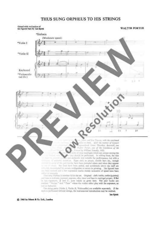 Digital Sheet Music for Thus Sung Orpheus to his String - Score by Walter Porter scored for Soprano-solo, Mixed Choir (satb) And Piano, 2 Violins And Cello Ad Libitum; id:484191