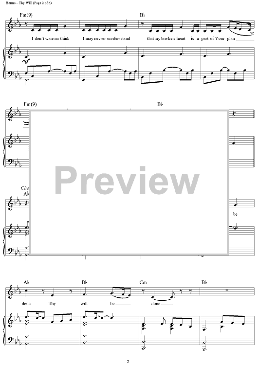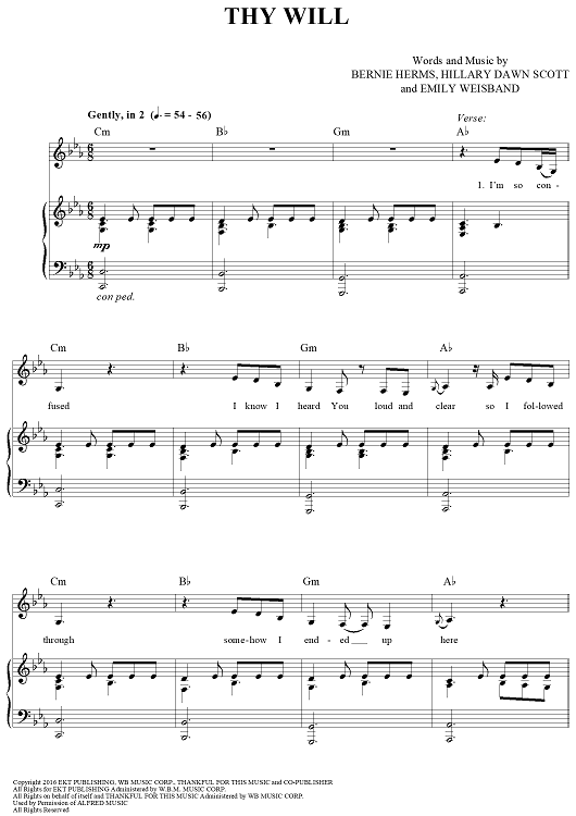 Digital Sheet Music for Thy Will by Bernie Herms, Hillary Scott, Emily Weisband scored for Piano/Vocal/Chords; id:457732