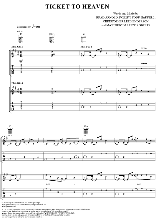 "Ticket to Heaven" Sheet Music by 3 Doors Down